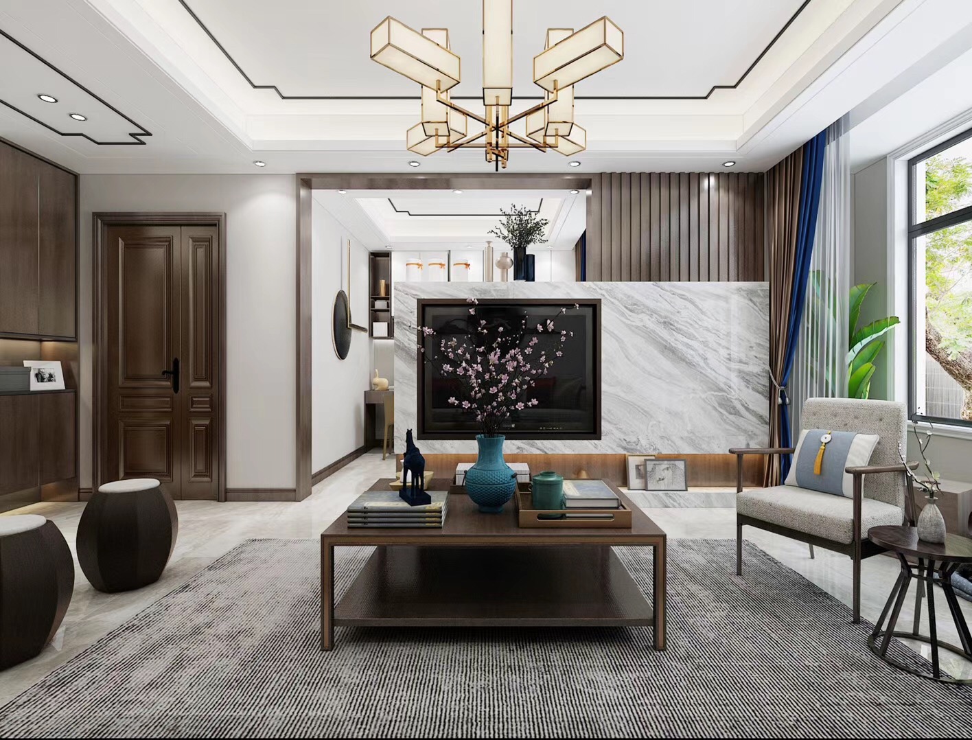 大眾上河灣145平三室兩廳兩衛(wèi)新中式風(fēng)格裝修,新中式風(fēng)格,既能滿足父母對中國風(fēng)的喜愛,又能滿足年輕人對現(xiàn)代感的需求。