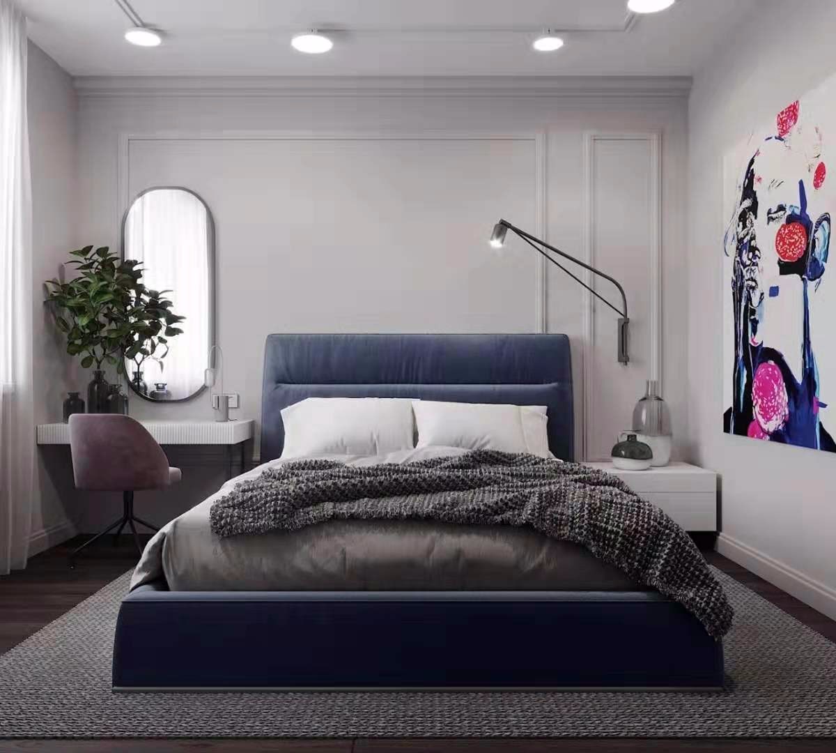 床頭燈的設計采用壁燈,不占據任何位置