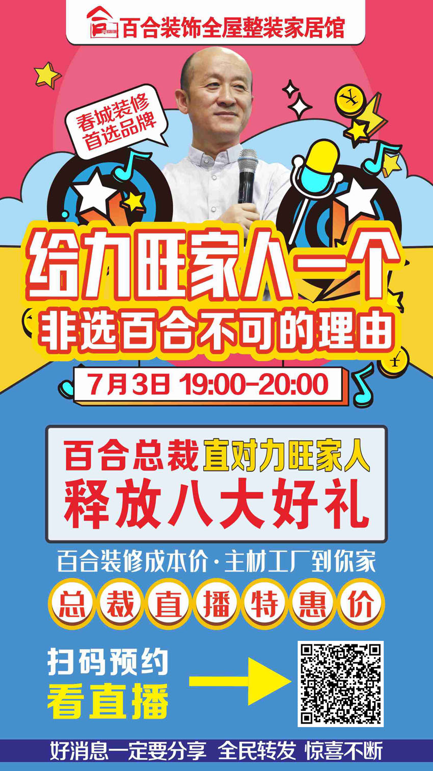 7月3號百合裝飾 總裁直播 力旺康城小區專場福利團購活動!
